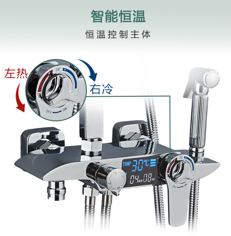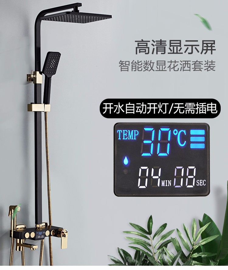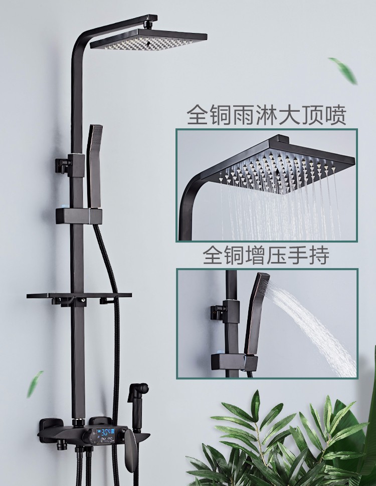 德国浪斯沐浴智能数显淋浴花洒套装全铜浴室家用恒温喷头黑色卫浴