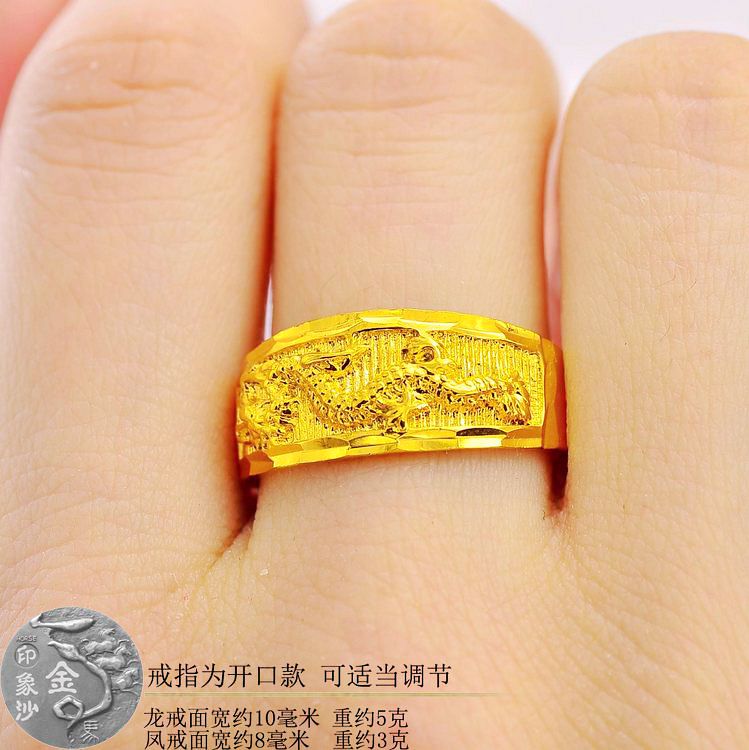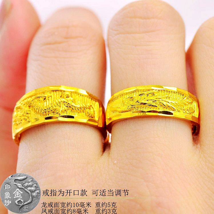 龙凤呈祥黄金戒指沙金金男女情侣对戒手工霸气不掉色首饰品