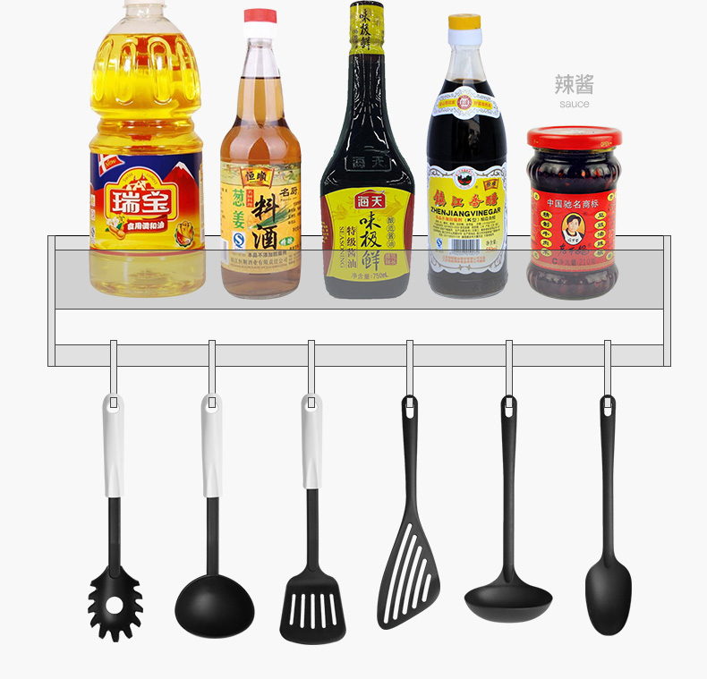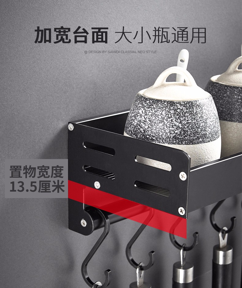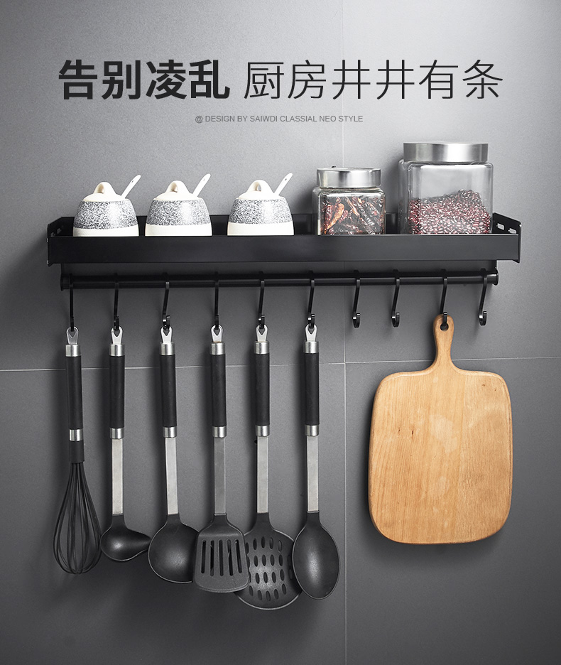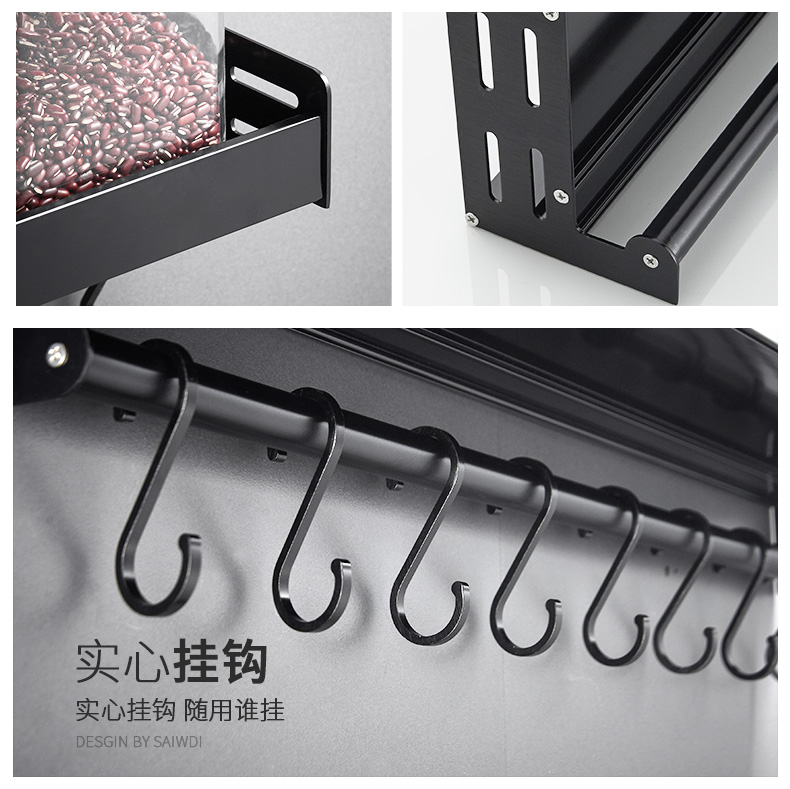 厨房调味品置物架 免打孔壁挂式 黑色调料收纳架挂架挂杆挂钩家用