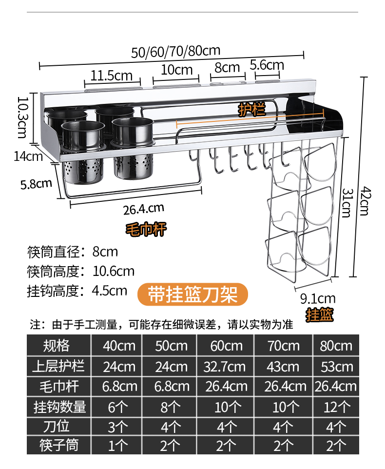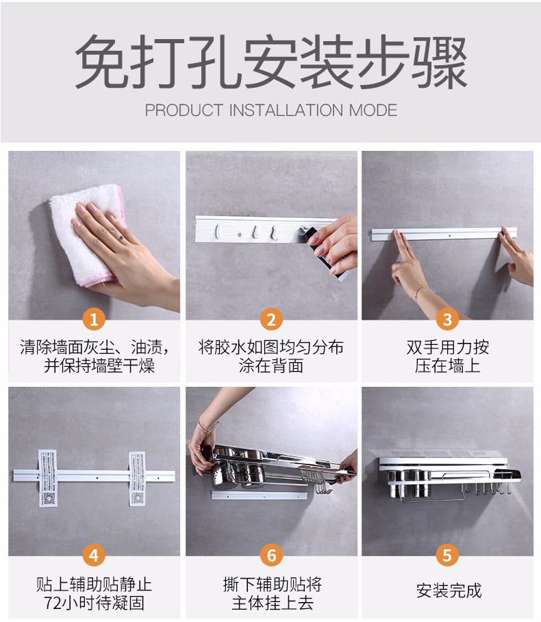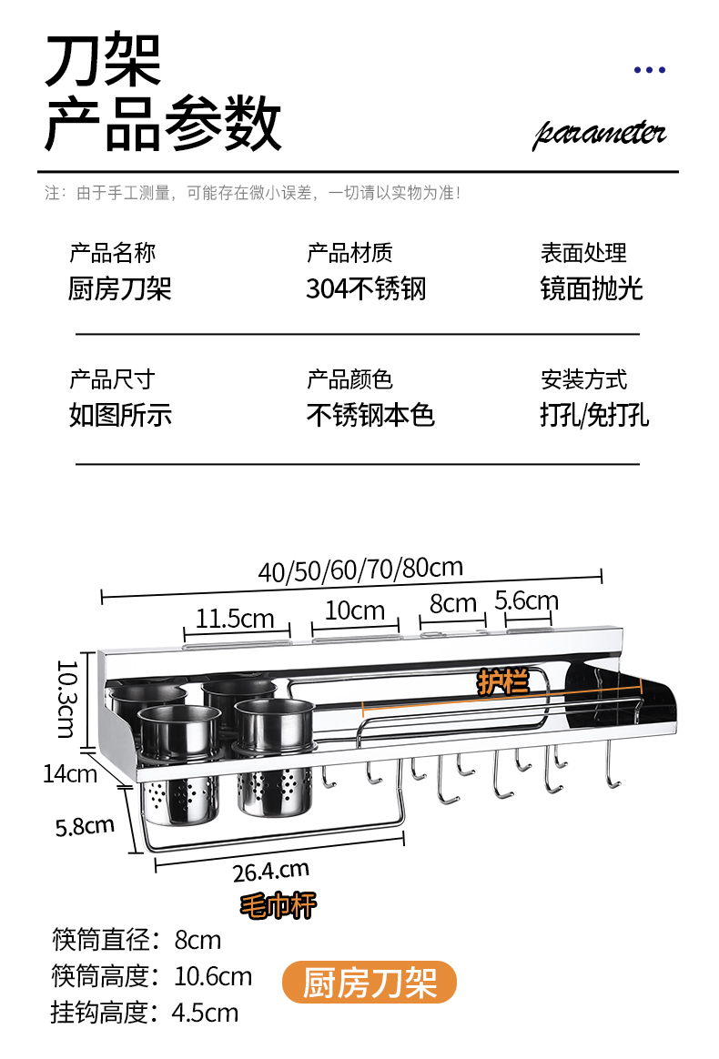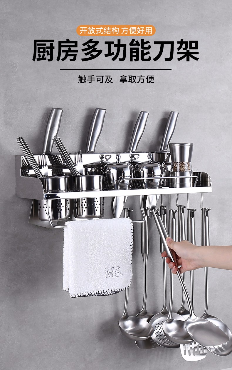 厨房置物架免打孔壁挂304不锈钢五金收纳厨具用品调味品刀架挂件