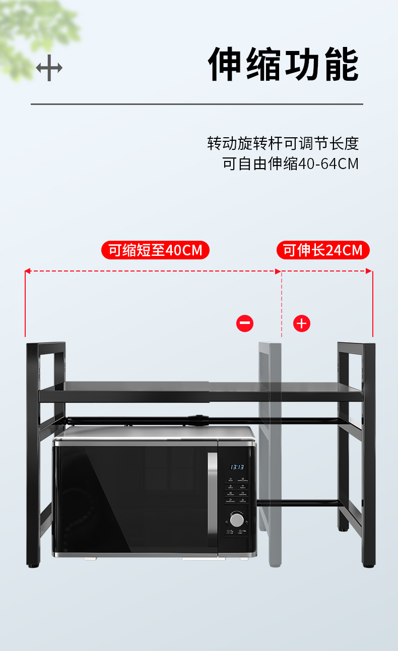 可伸缩厨房置物架微波炉烤箱架子家用双层台面桌面电饭锅收纳支架