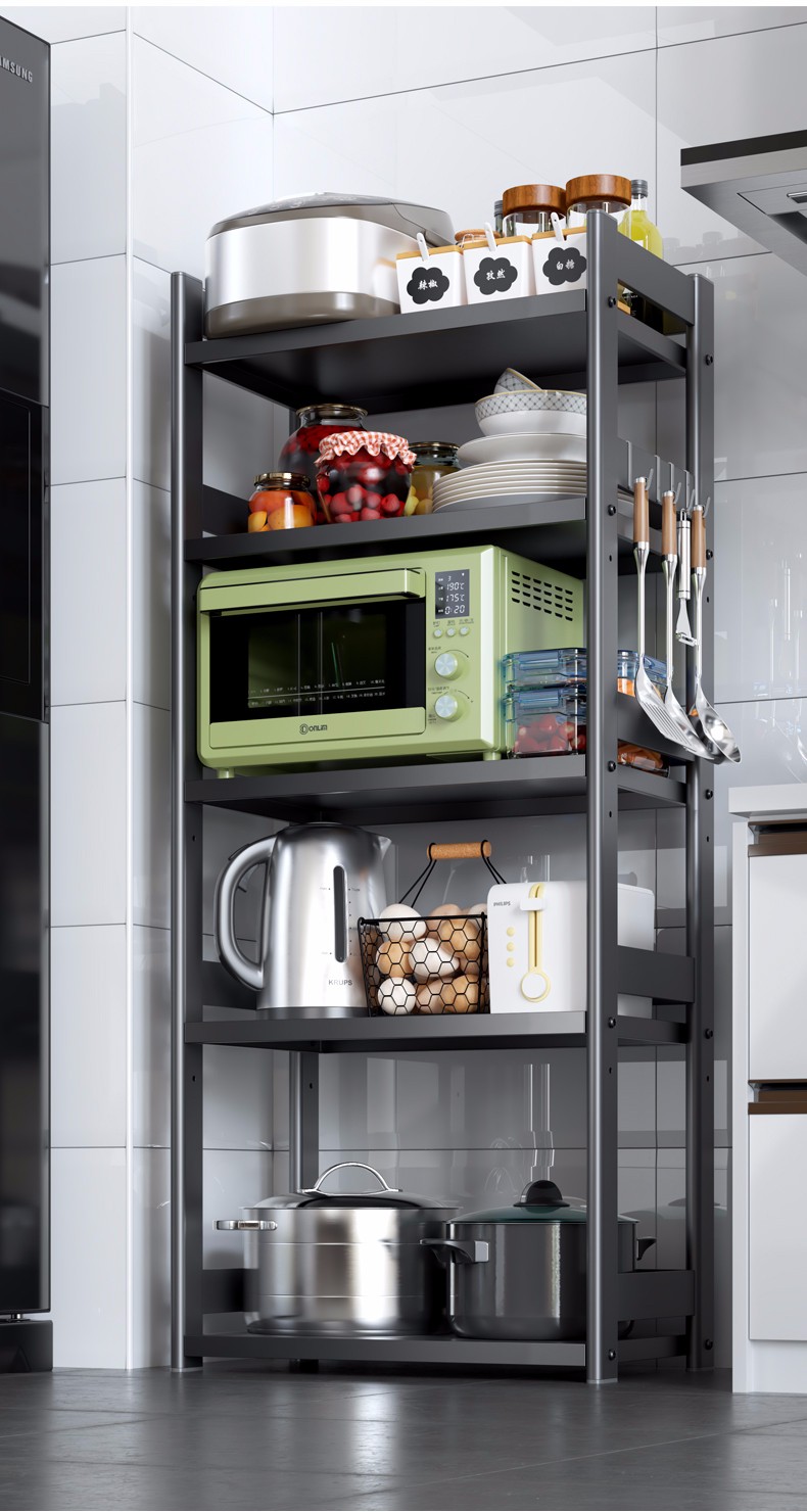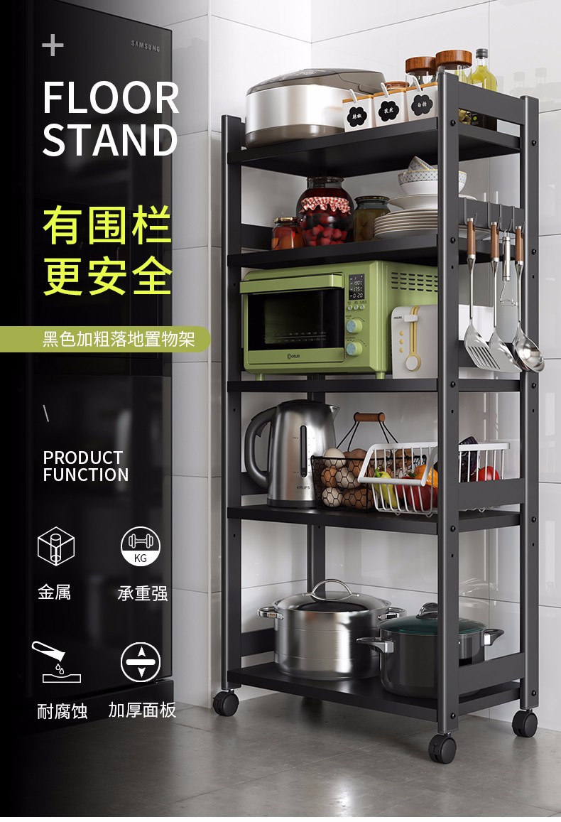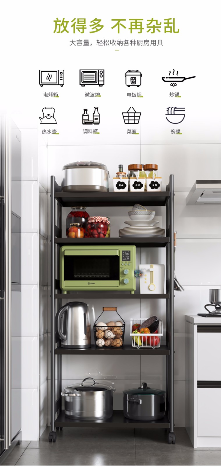 厨房置物架落地多层微波炉烤箱用品家用放电饭煲一体收纳架子大全