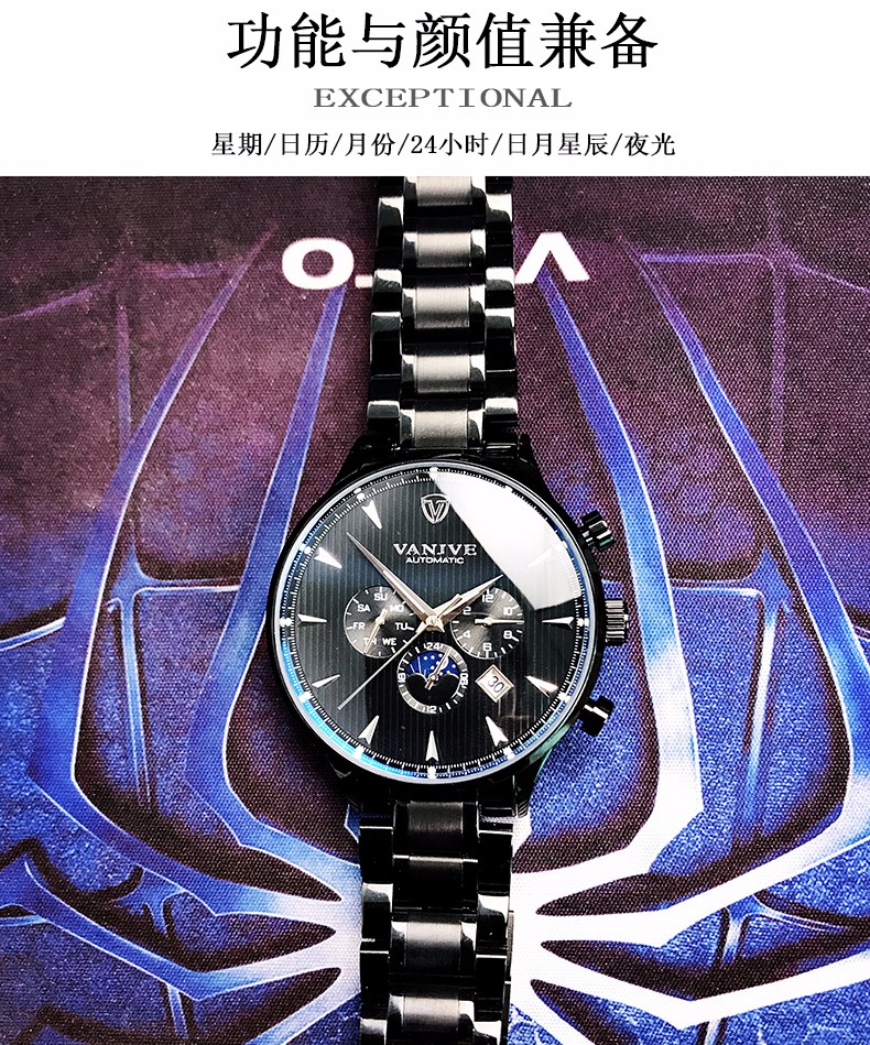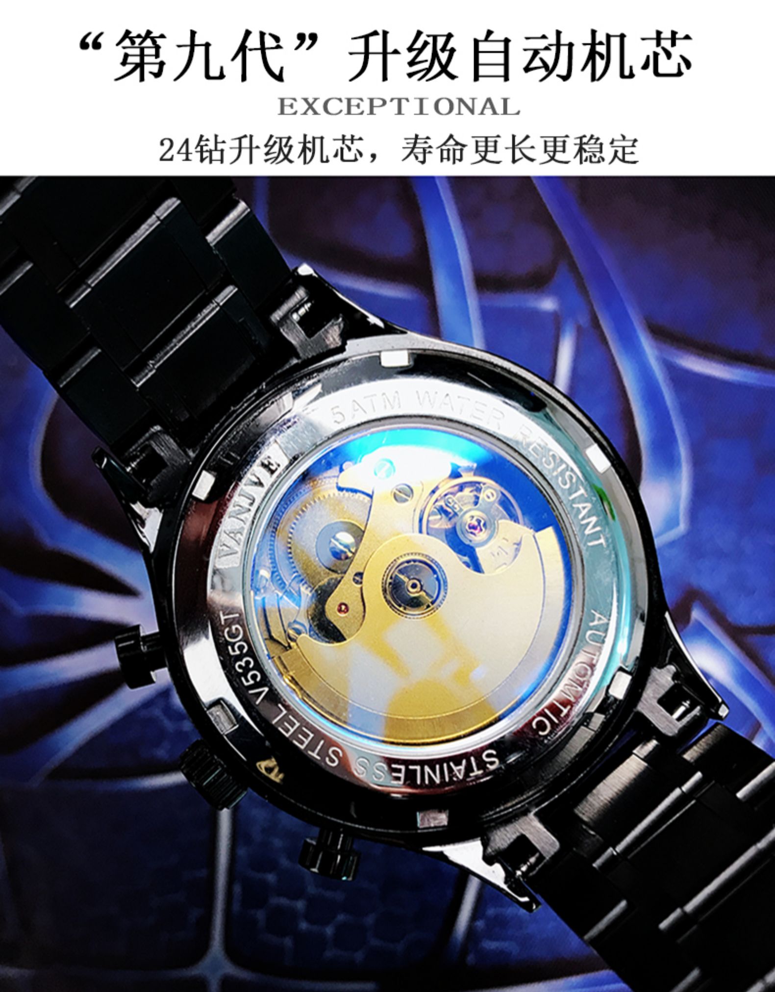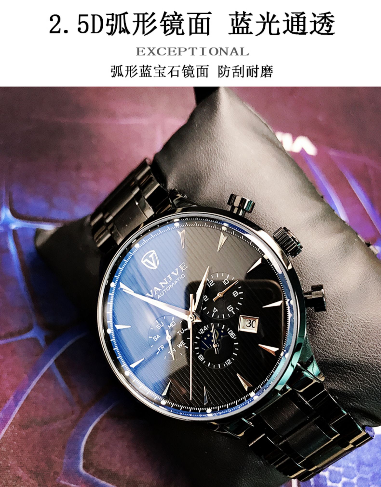 凡爵手表男士机械表全自动防水夜光十大品牌瑞士学生新款男表