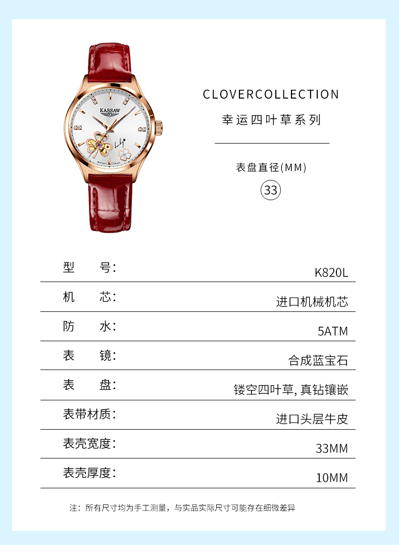 瑞士正品官方卡梭手表女士新款简约气质机械表女款名牌防水