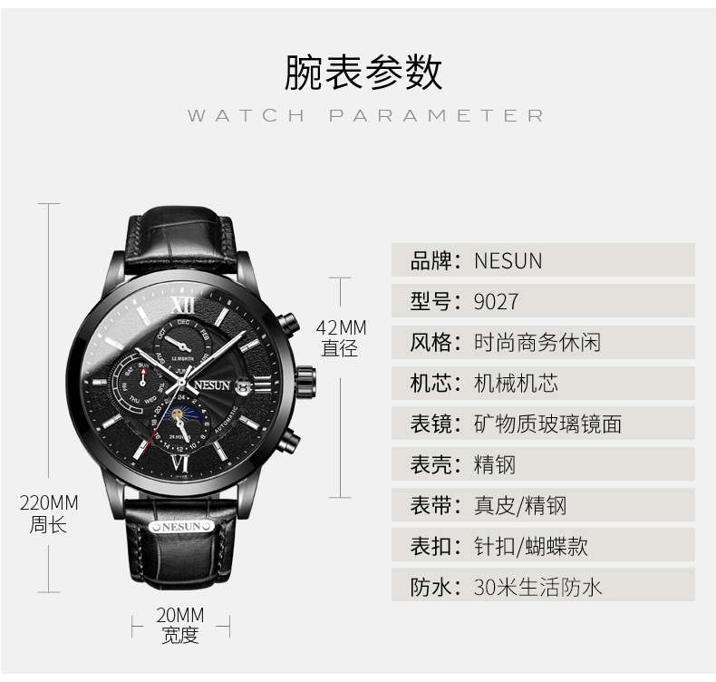 正品尼尚手表男机械表潮全自动时尚防水2020新款学生十大品牌男表