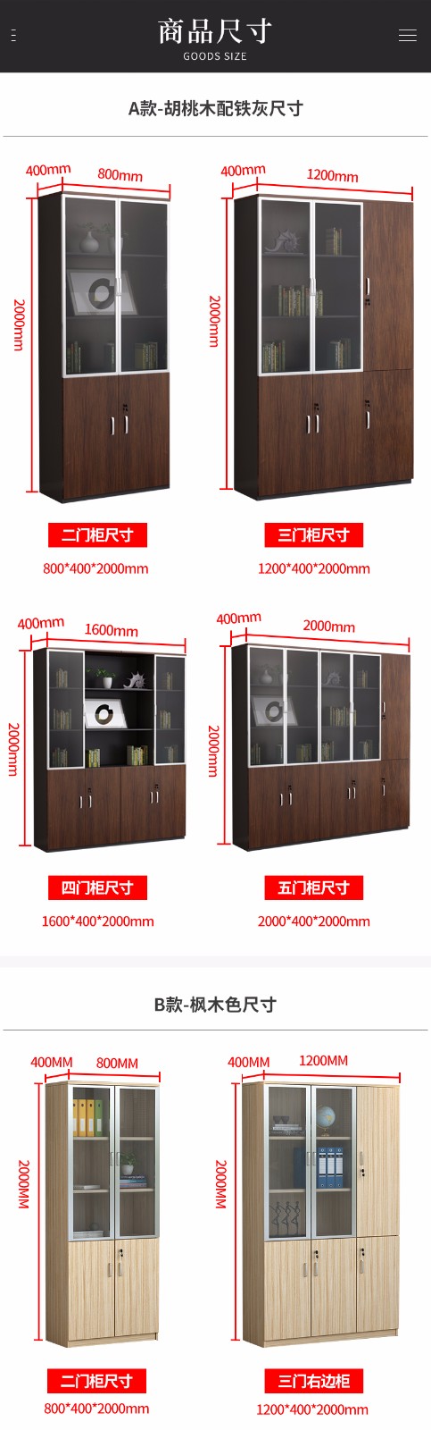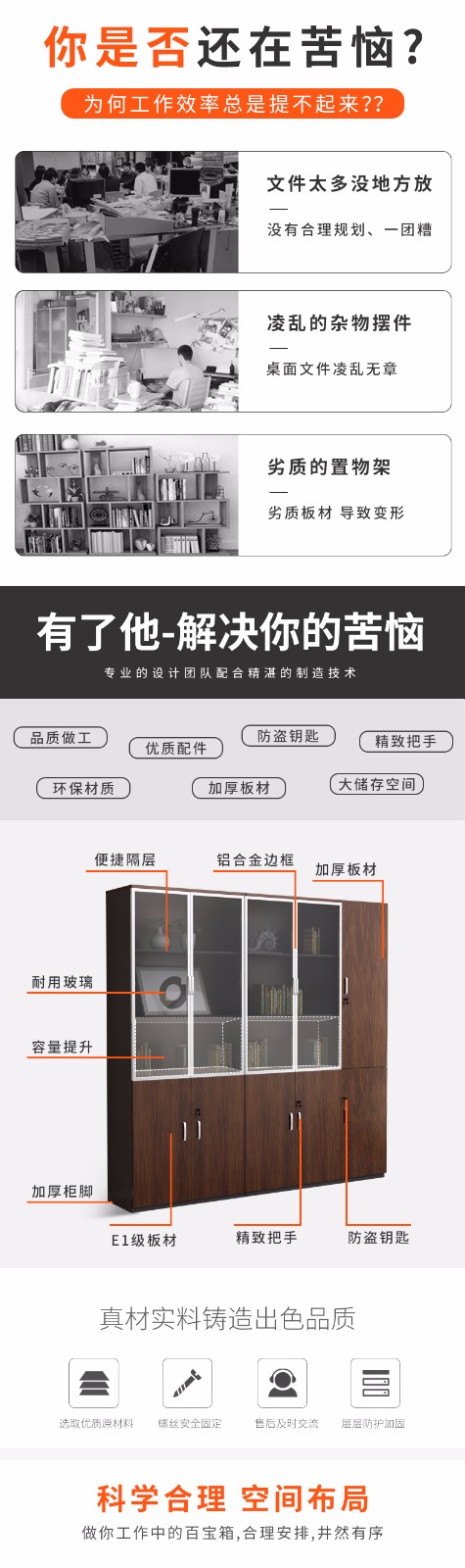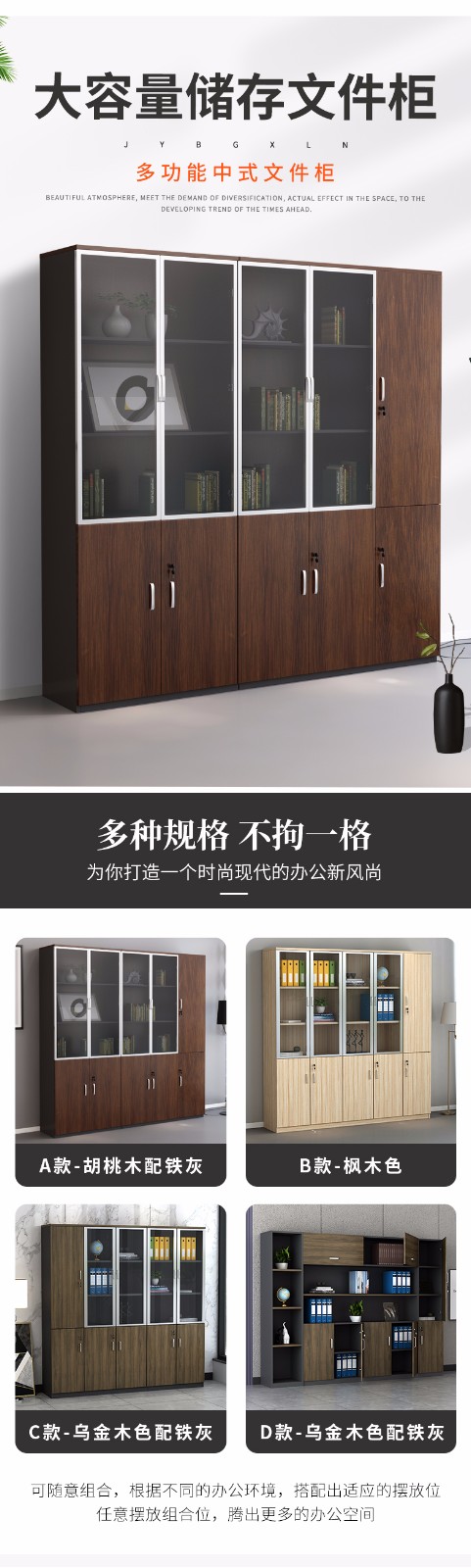 办公文件柜资料柜带锁储物档案柜子木质玻璃高柜老板室书柜家具