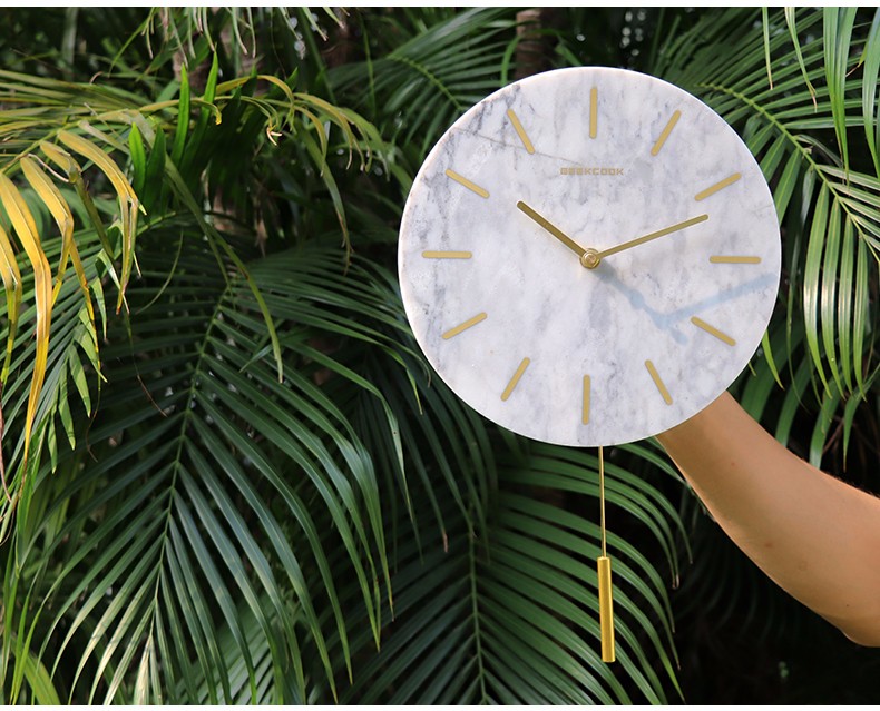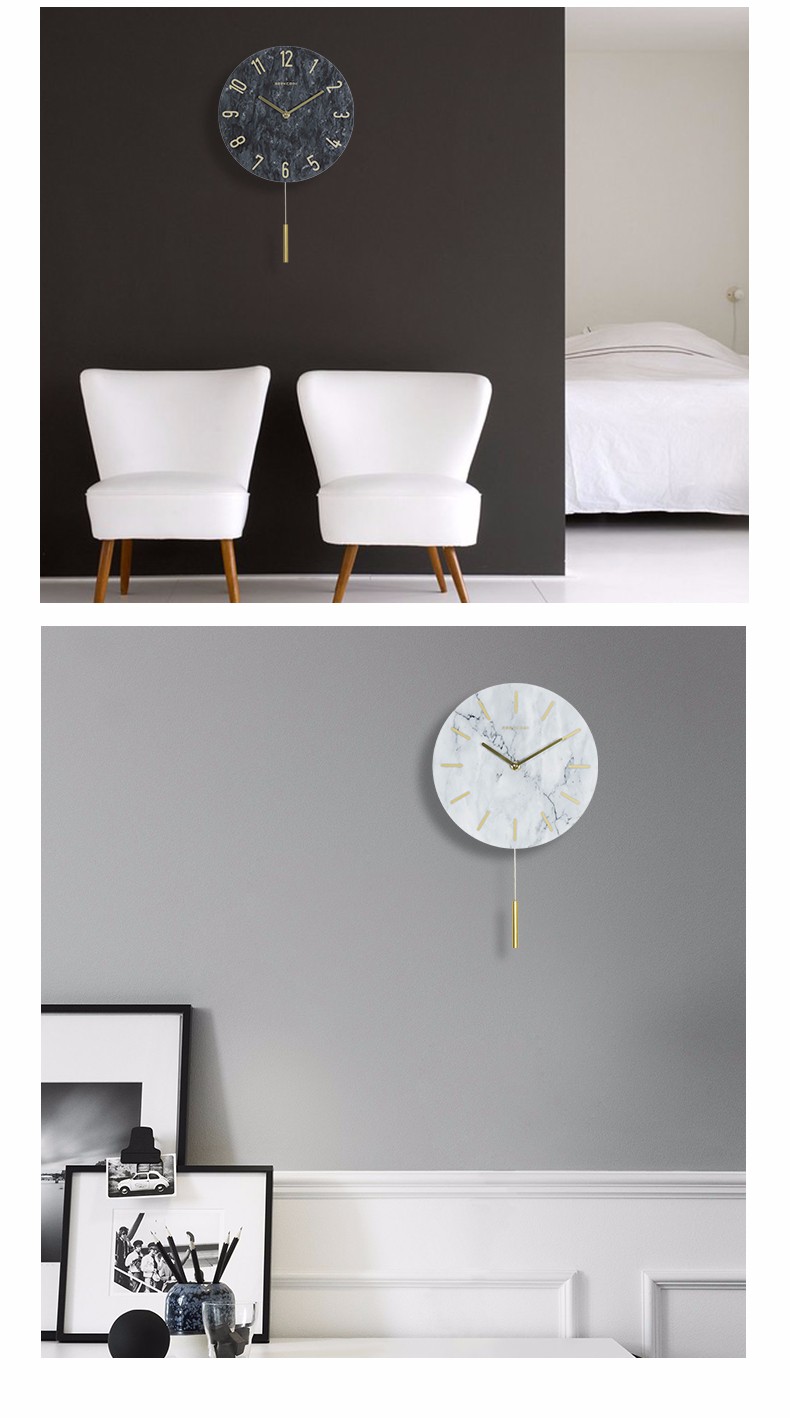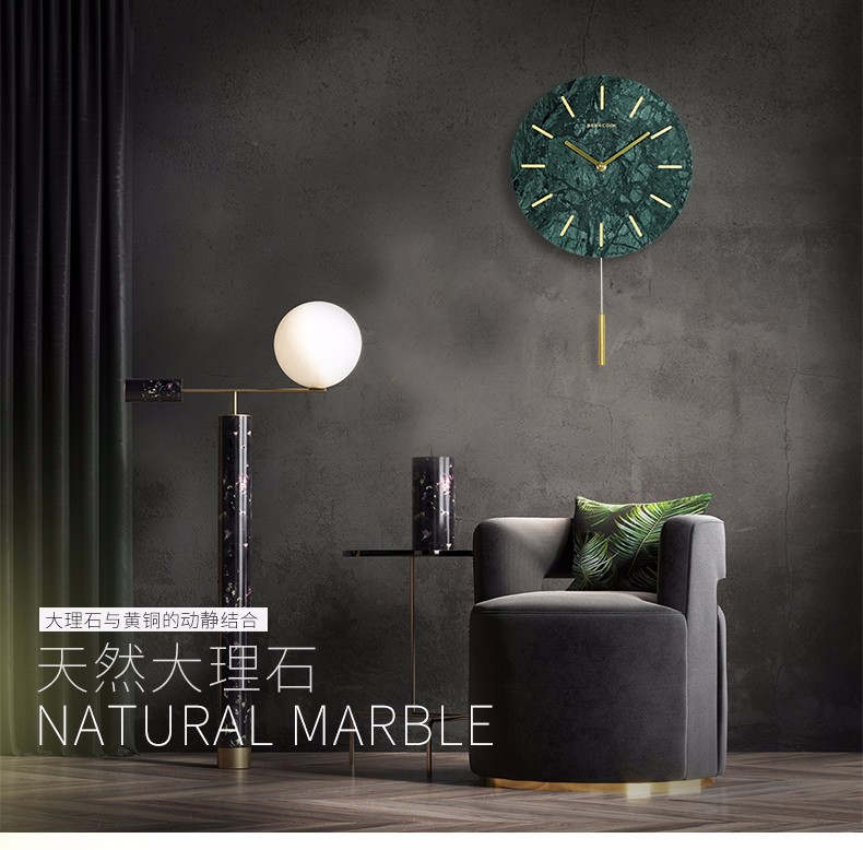 北欧挂钟大理石轻奢装饰时钟客厅创意挂表静音钟家用现代简约钟表