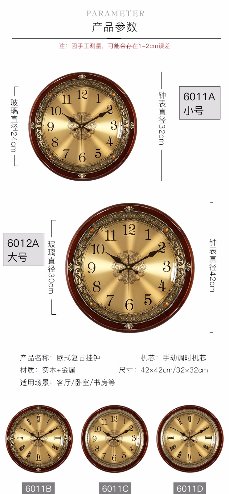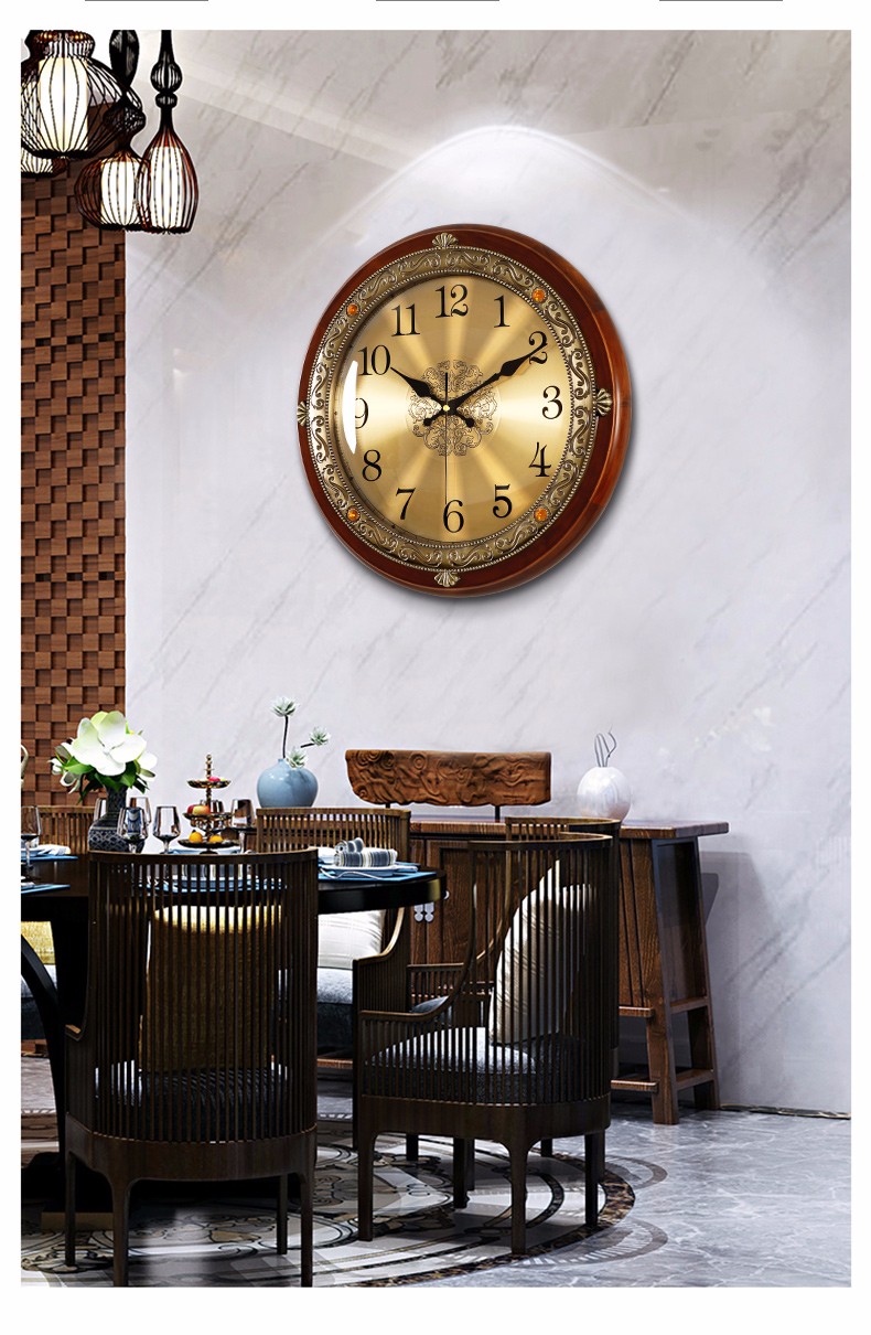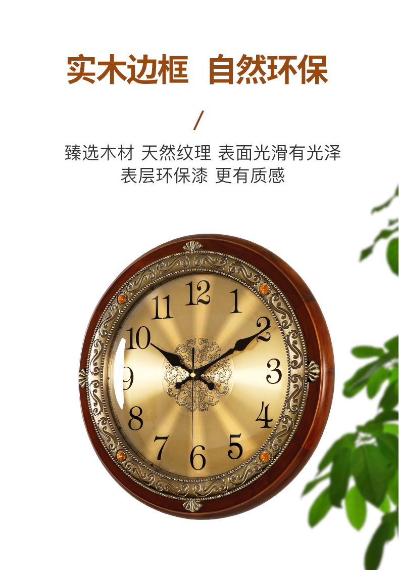 实木挂墙挂钟客厅欧式家用时钟美式轻奢卧室挂表时尚大气石英钟表