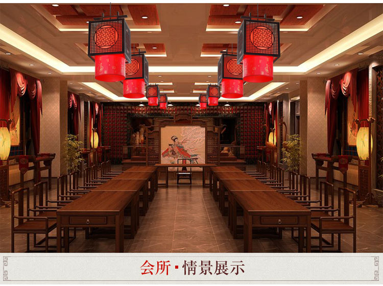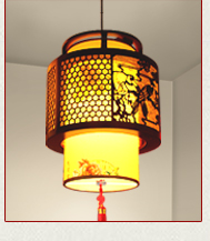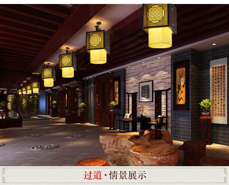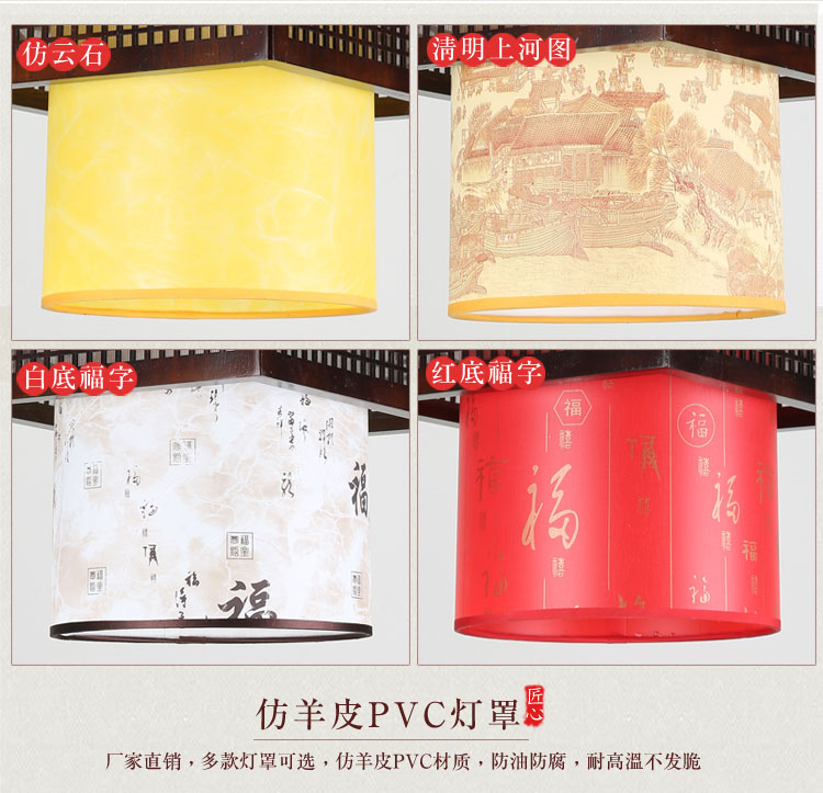现代中式吊灯实木餐厅仿古灯玄关羊皮灯饰复古中国风阳台古典吊灯