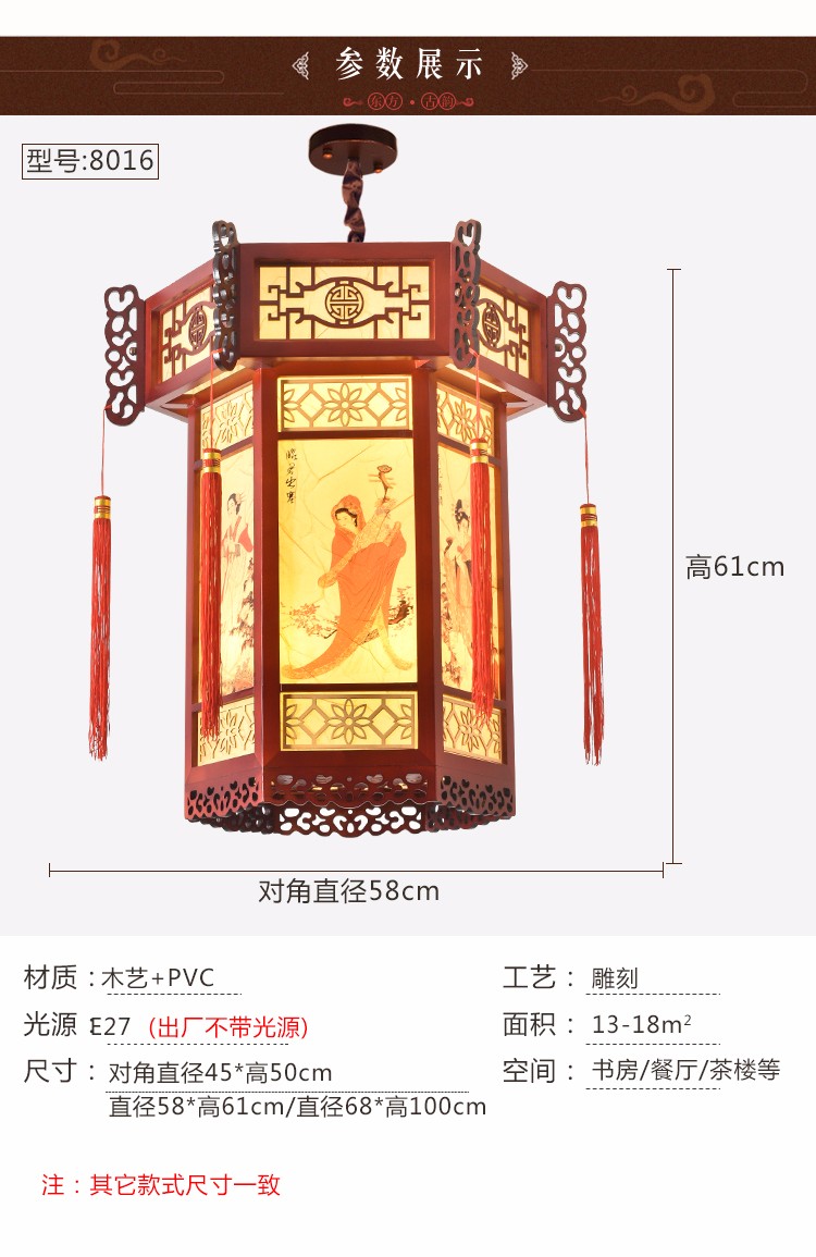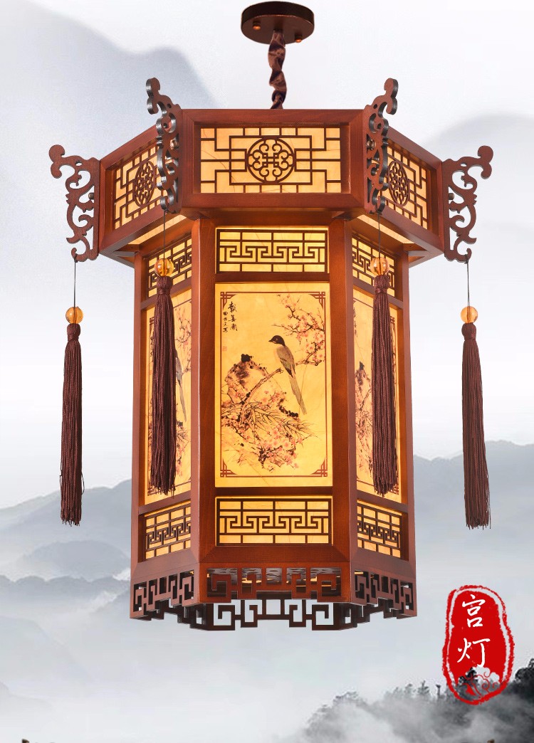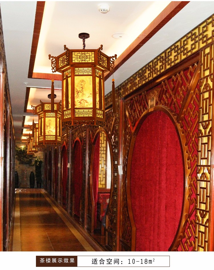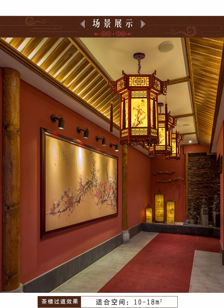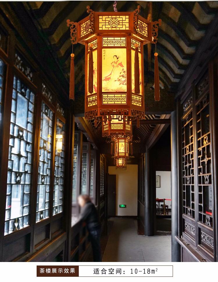中式仿古实木宫灯复古寺庙祠堂长廊凉亭古风建筑六角灯笼宫廷吊灯