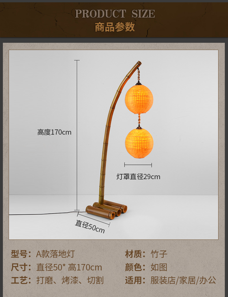 中式复古风竹落地灯客厅竹艺茶室会所泰日式东南亚创意装饰地灯具