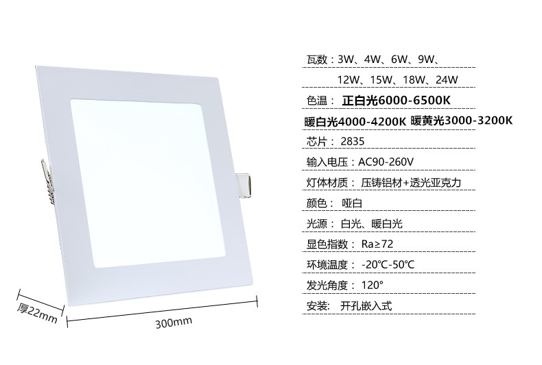 适用欧普LED开孔20X20cm 17X17cm超薄面板灯平板灯厨卫灯方形筒灯
