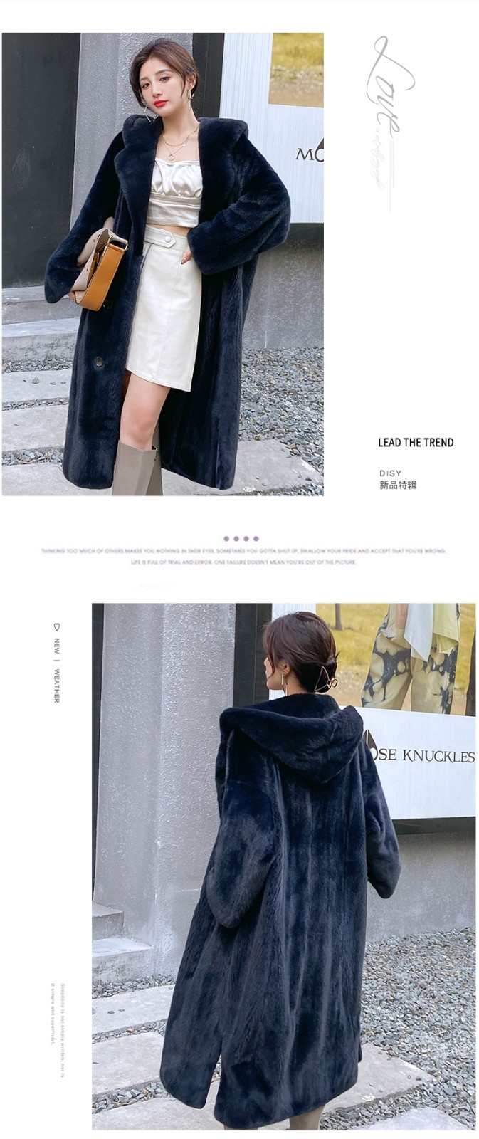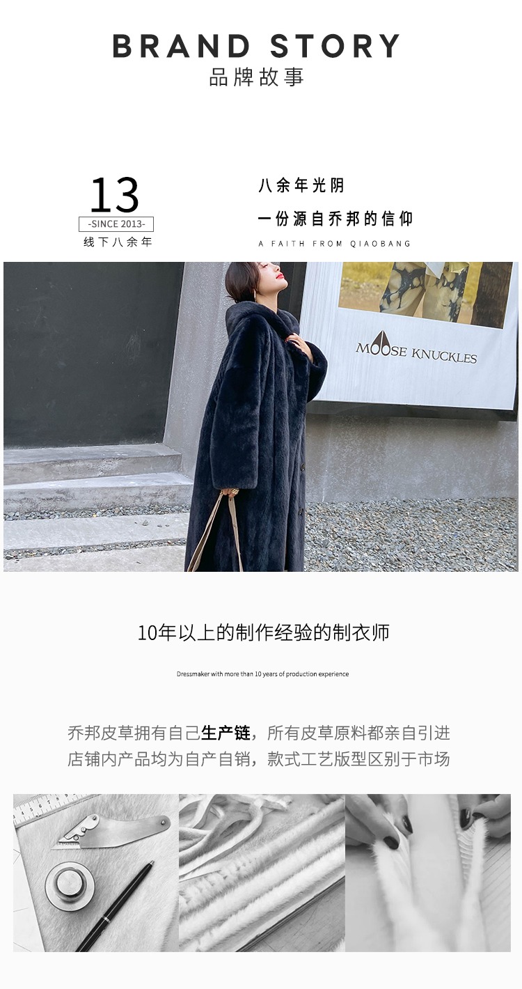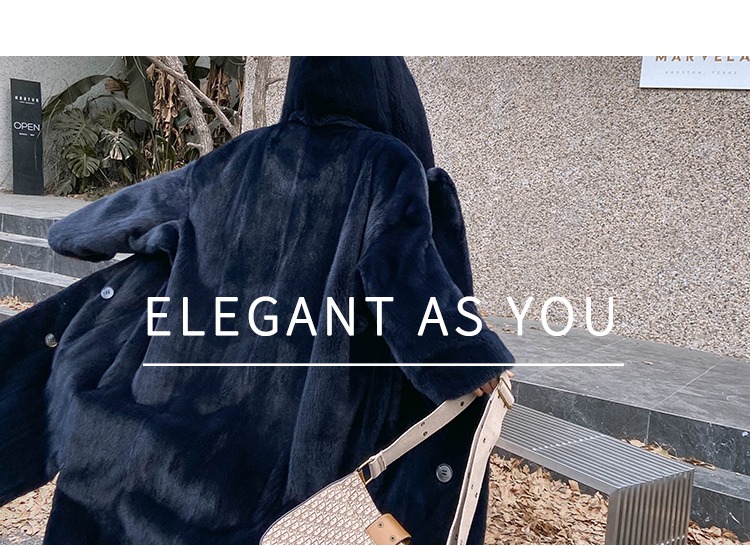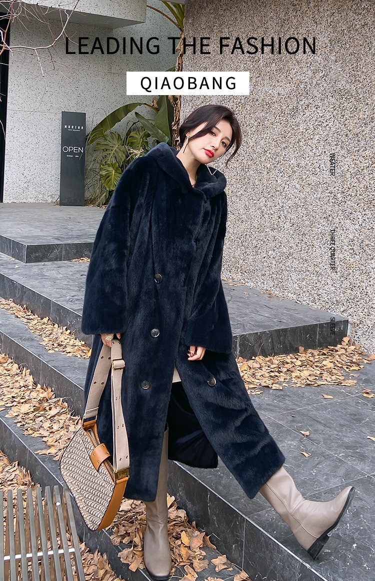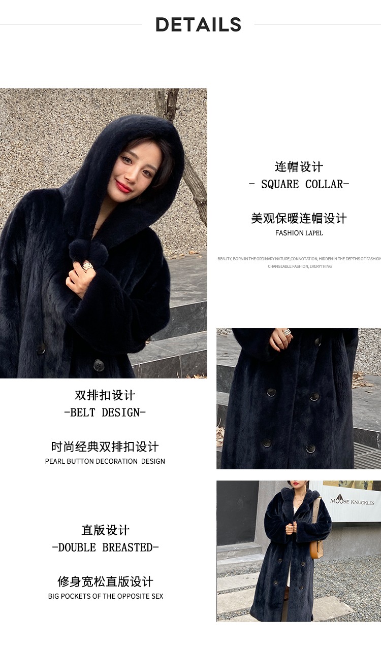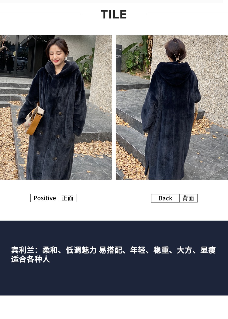 乔邦进口天鹅绒貂皮大衣女长款整貂连帽大码宽松水貂皮草裘皮外套