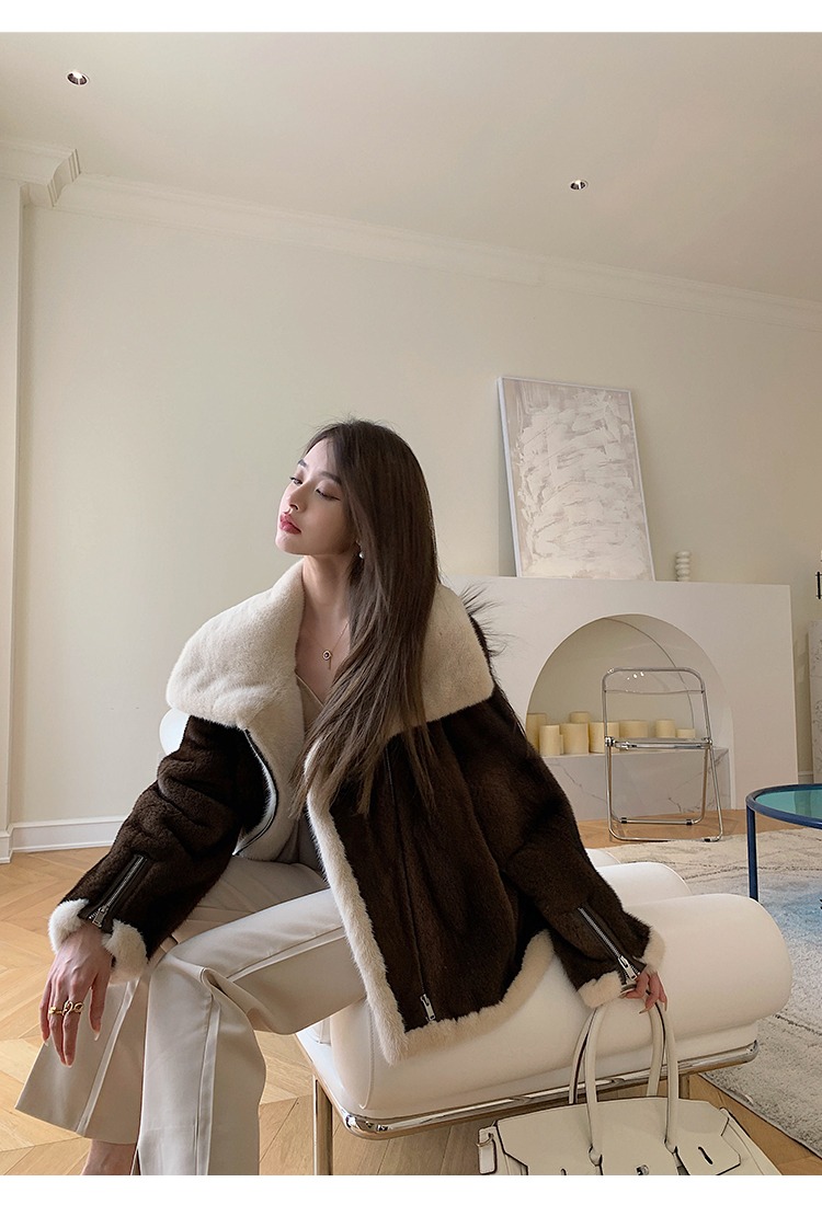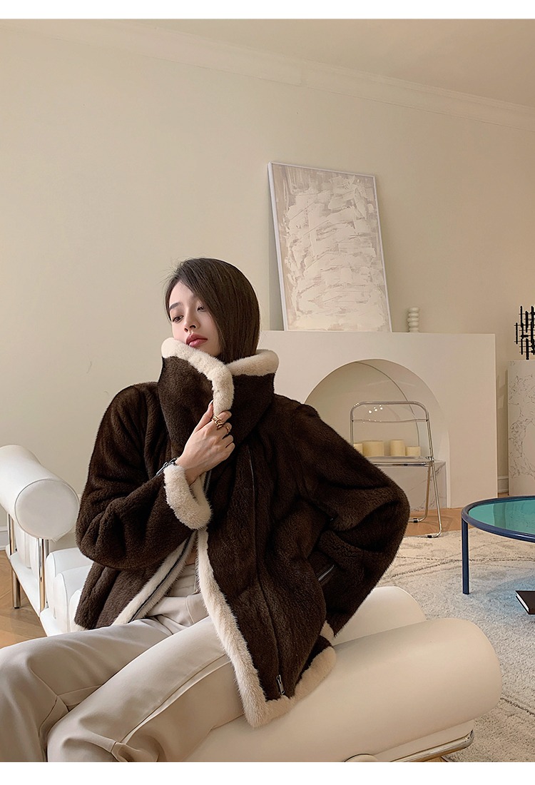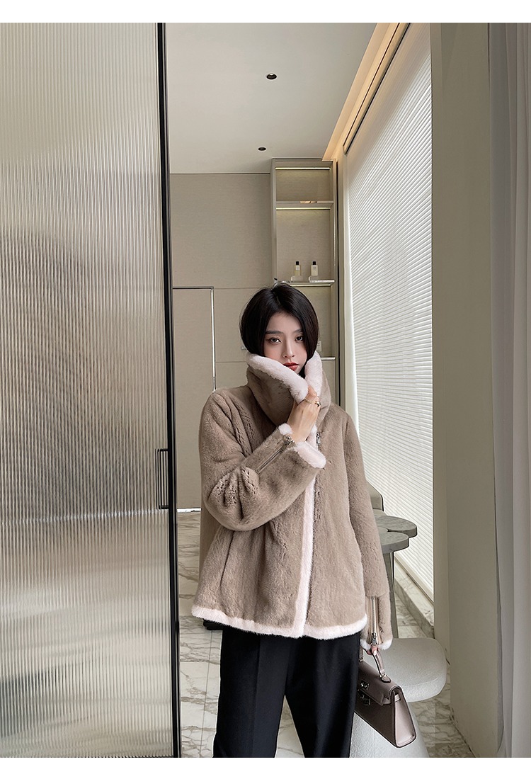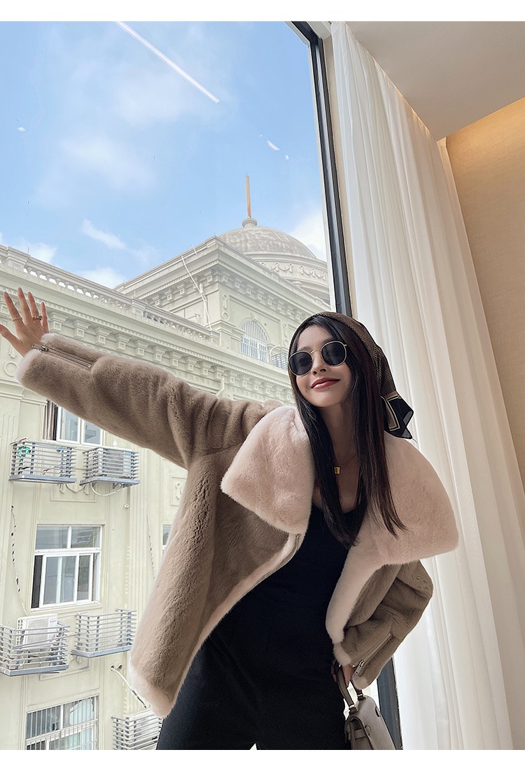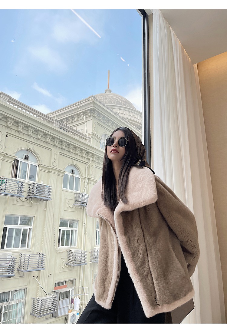 淇淇家 年轻款披肩领貂皮大衣女整貂进口天鹅绒水貂皮草时尚外套