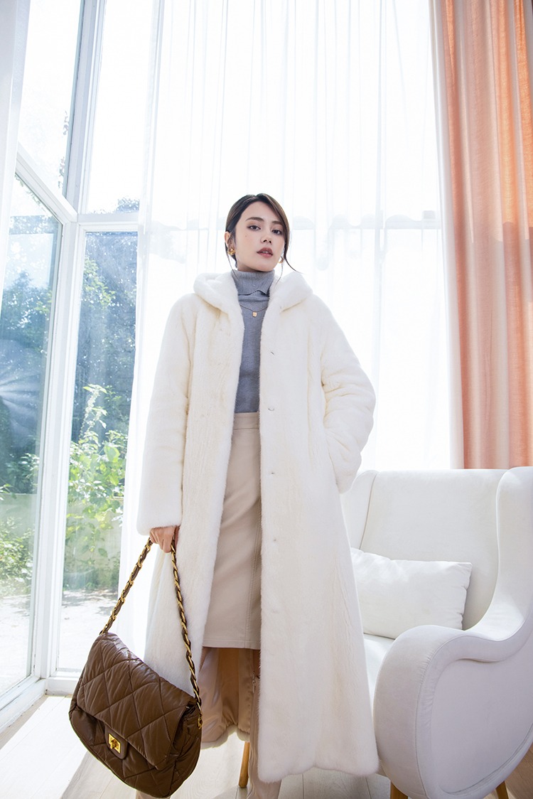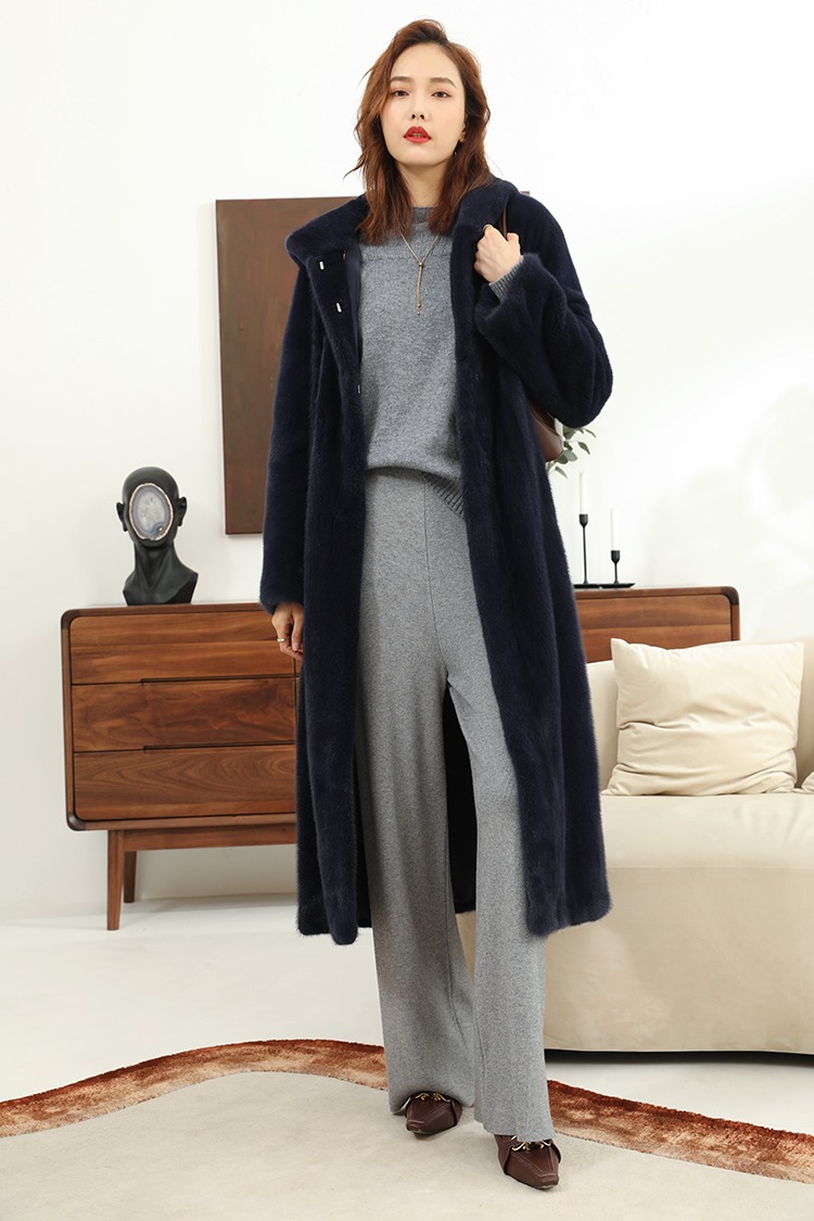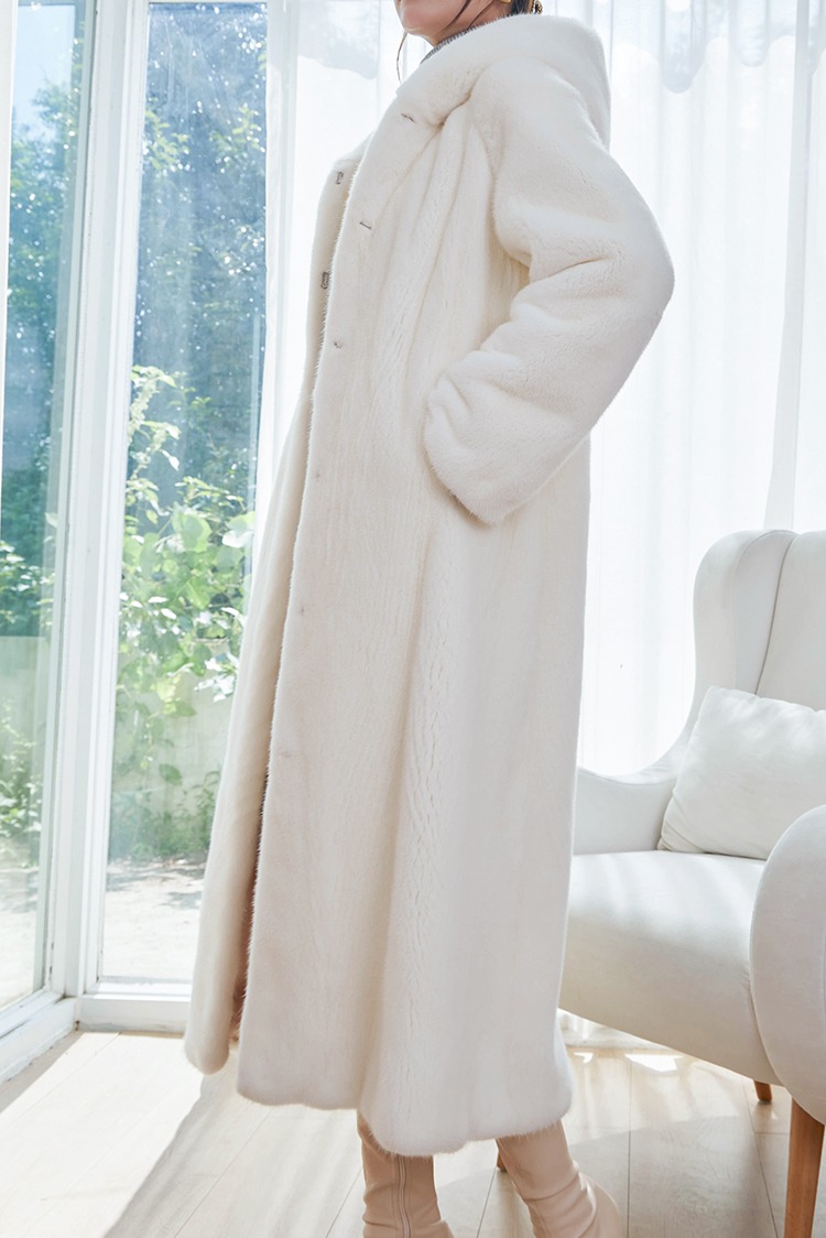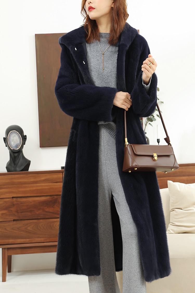 115C过膝进口天鹅绒貂皮大衣女整貂长款带帽高端水貂皮草外套年轻
