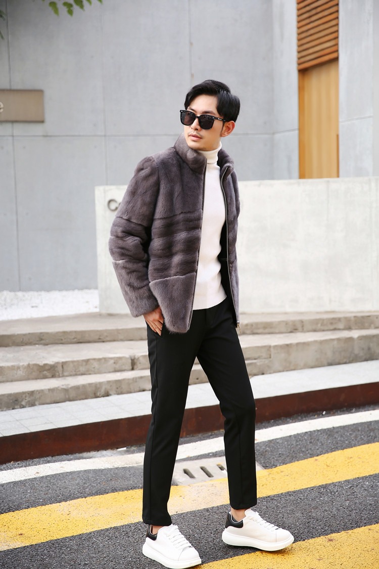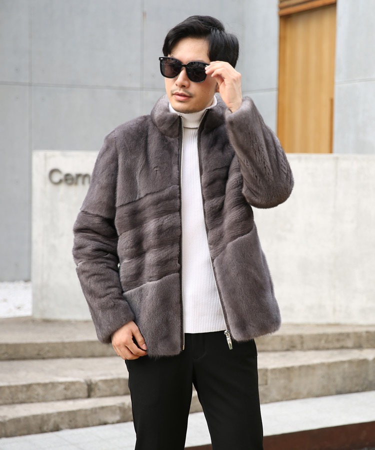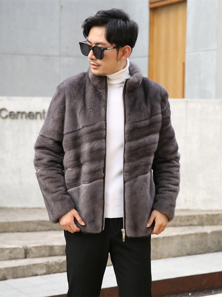 新冬时尚短款夹克立领铁灰进口水貂貂皮大衣男装整貂真貂外套