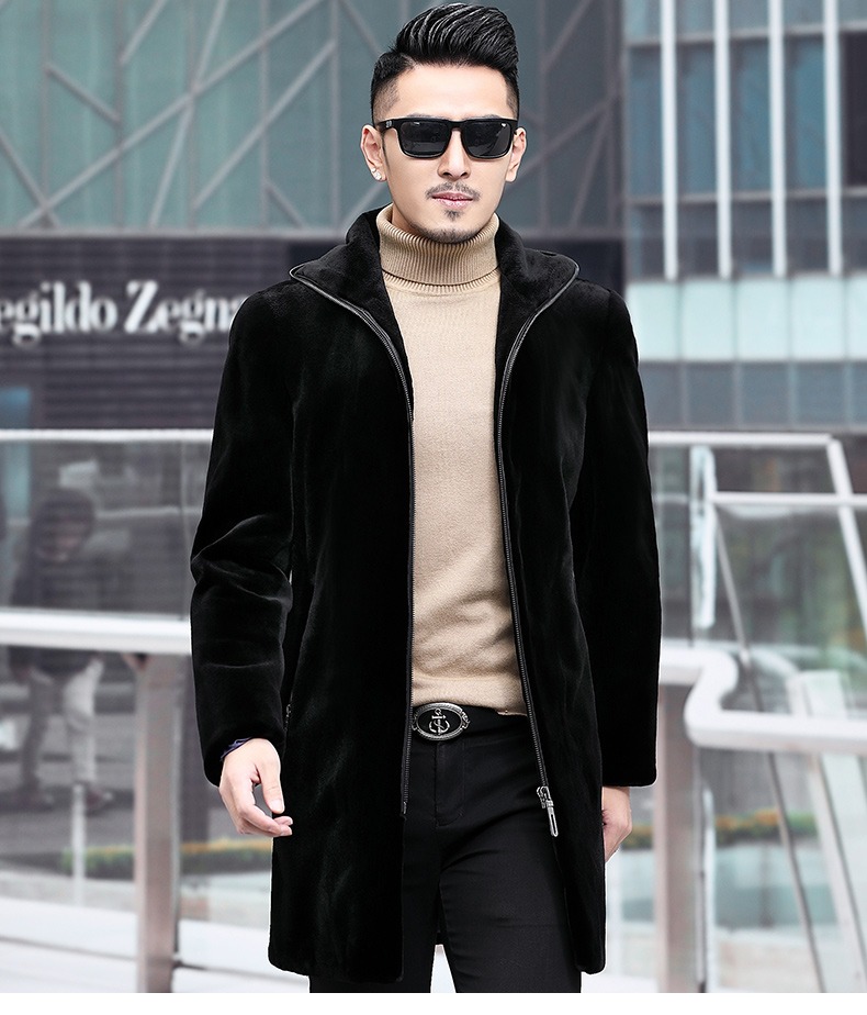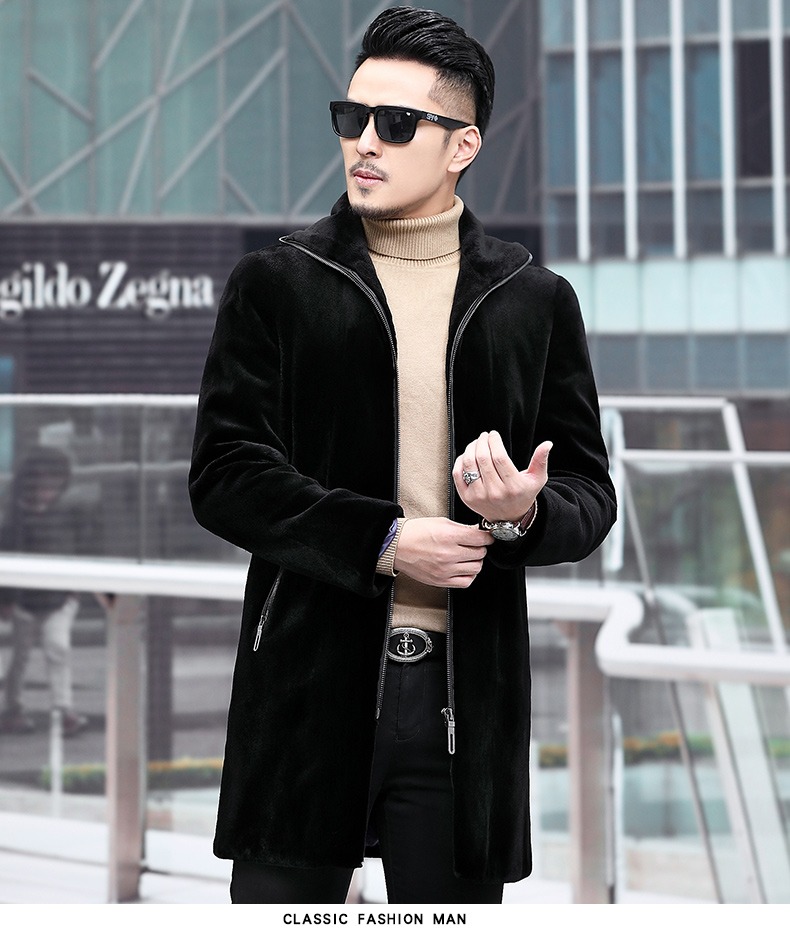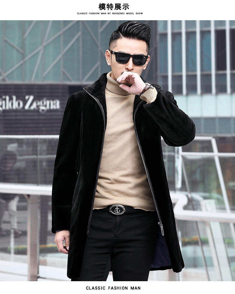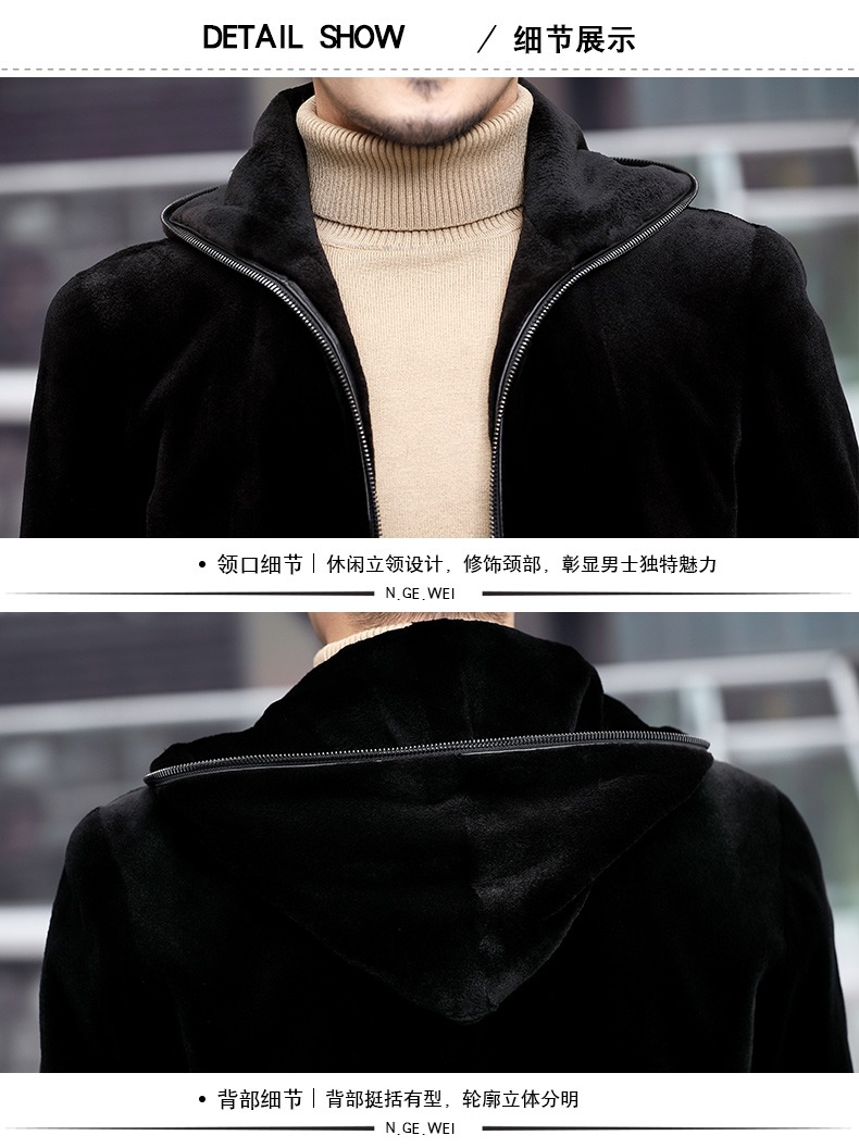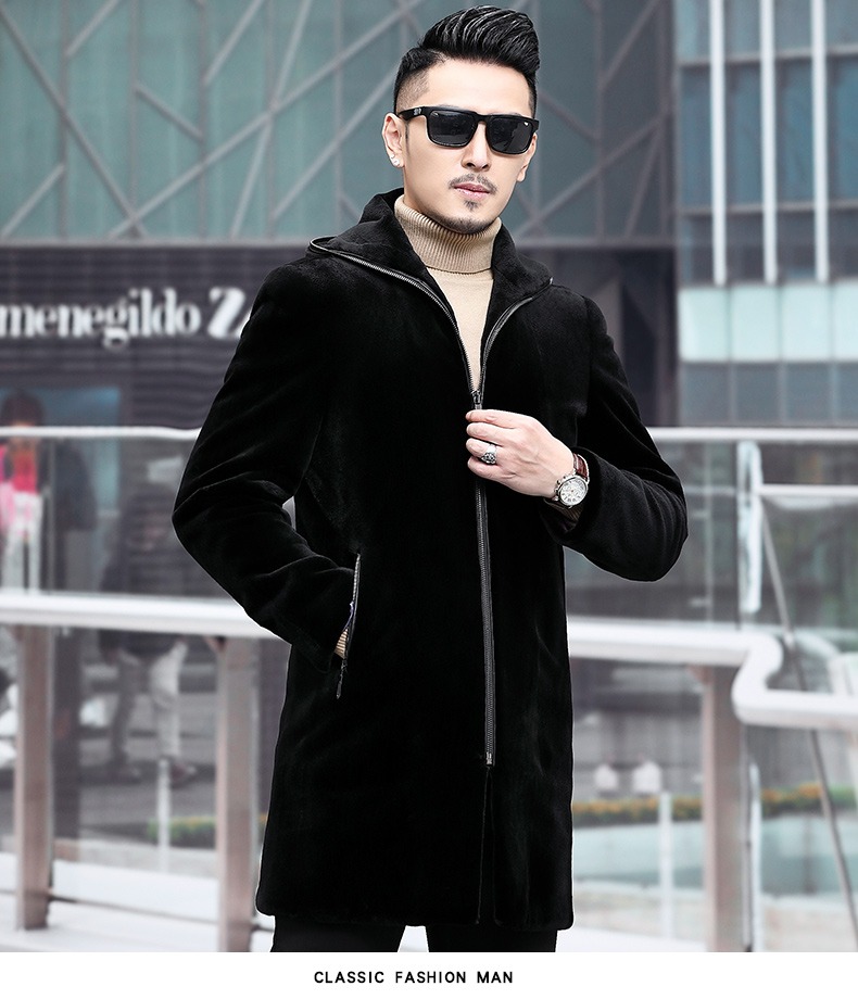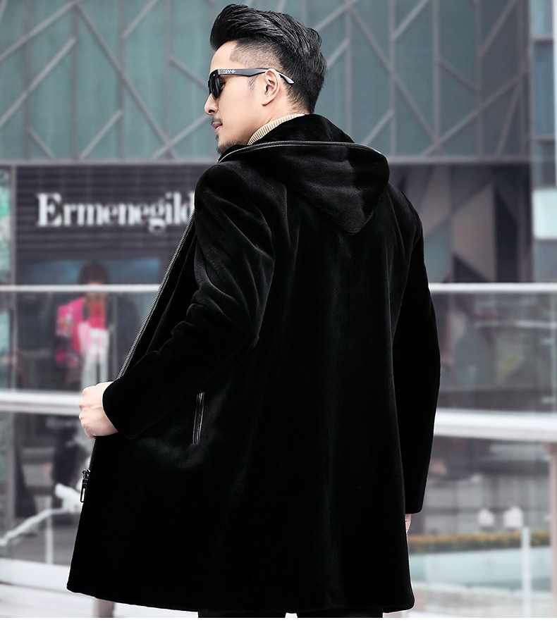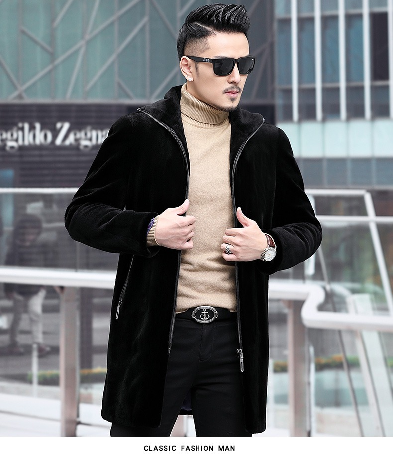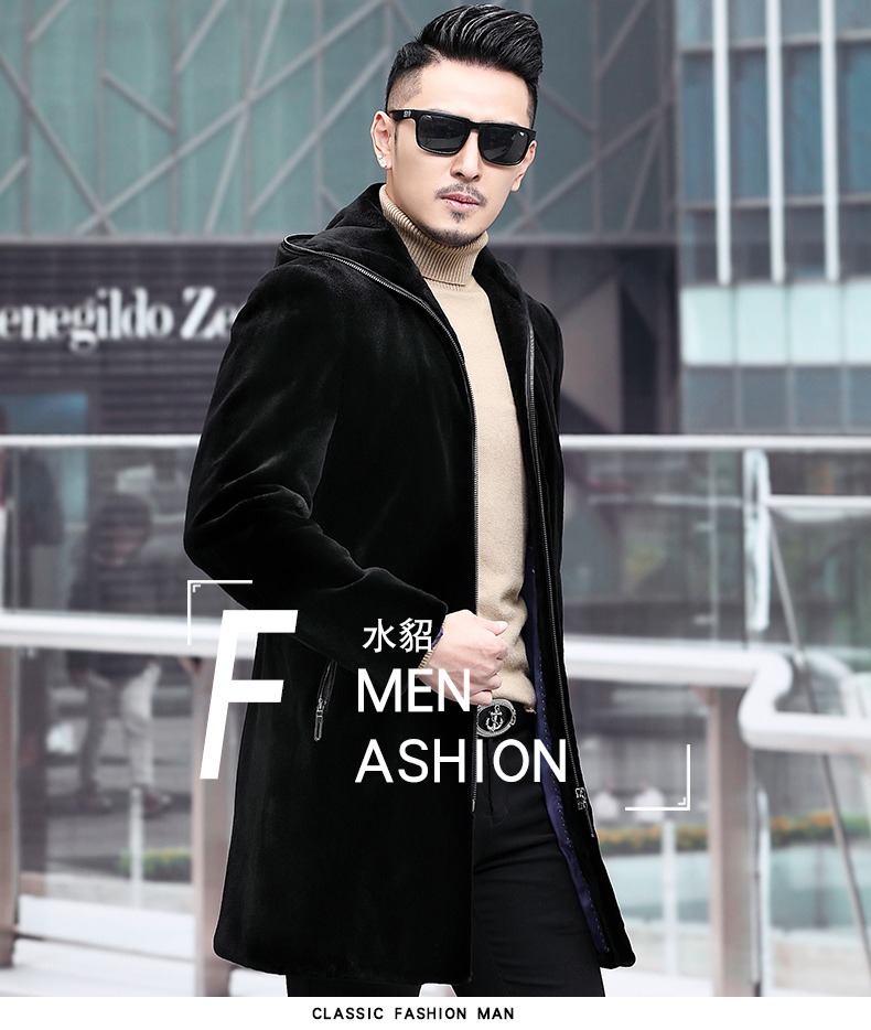 貂皮大衣男连帽中长款修身貂绒高档裘皮男装海宁休闲真皮皮草水貂